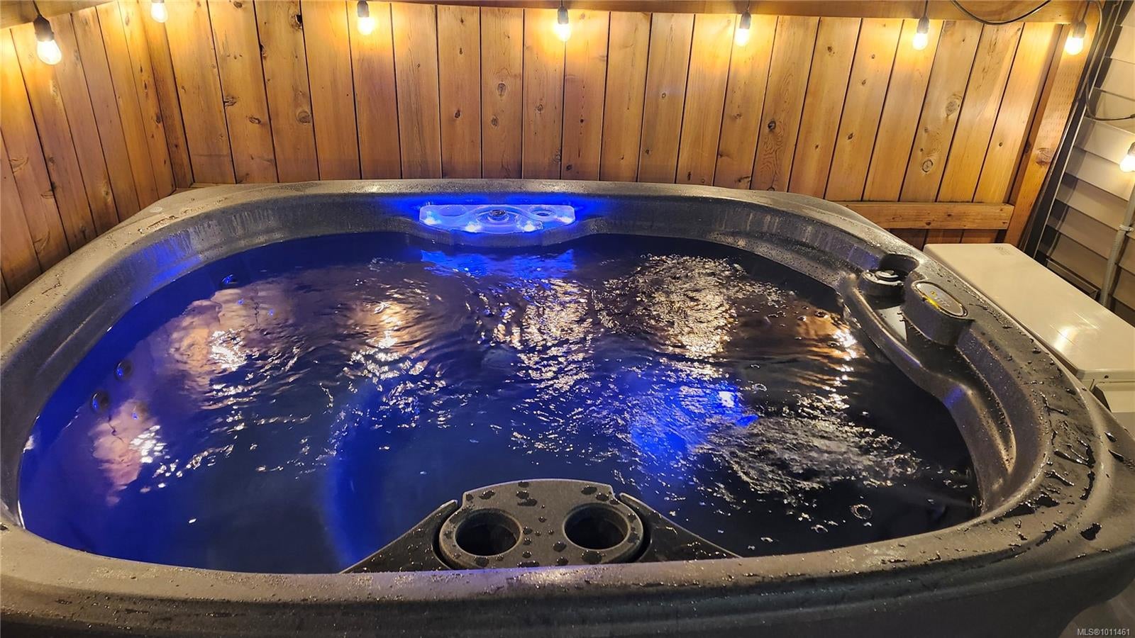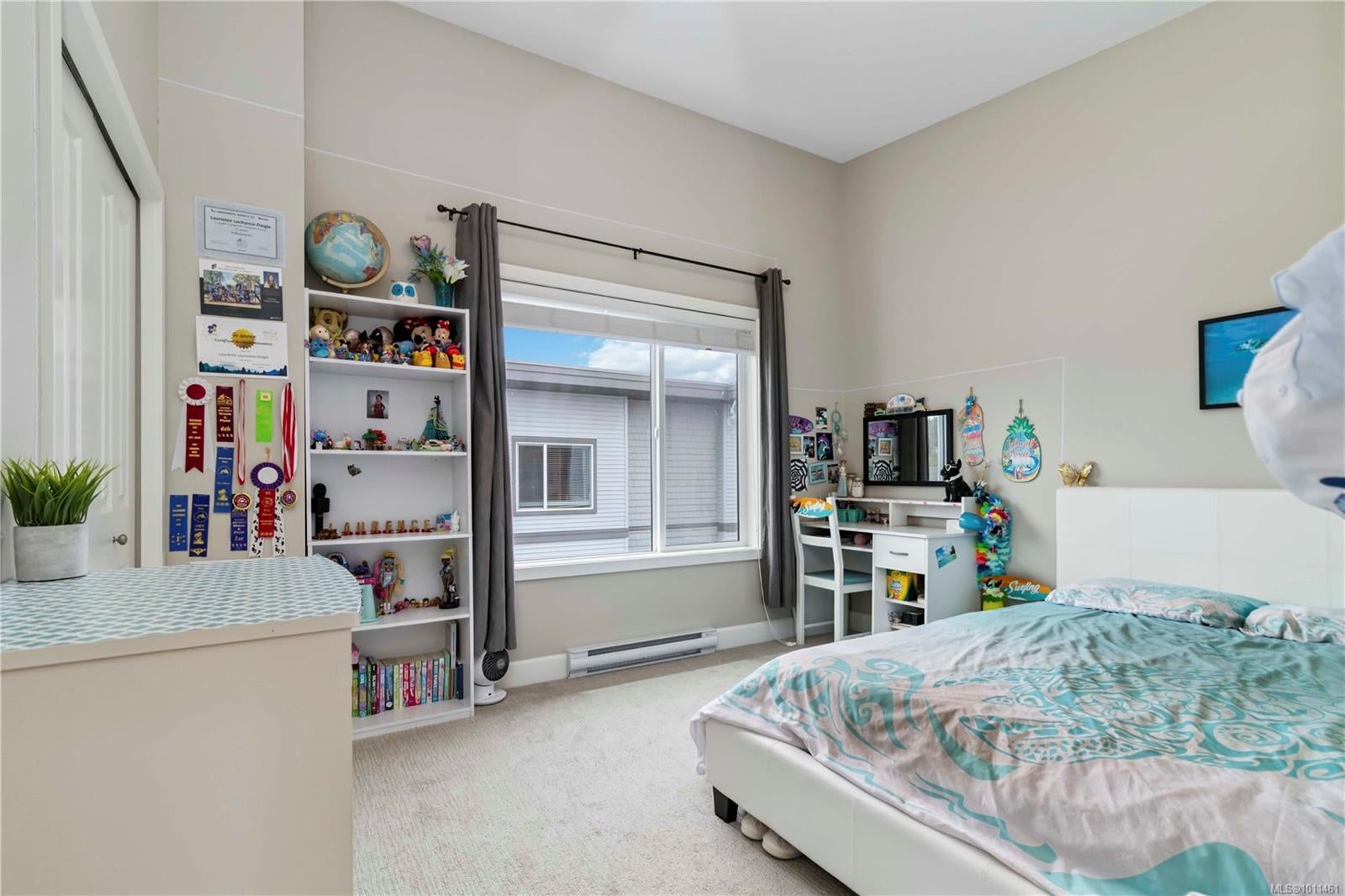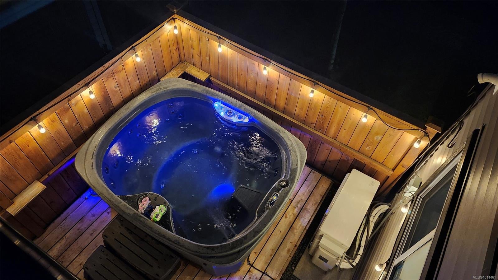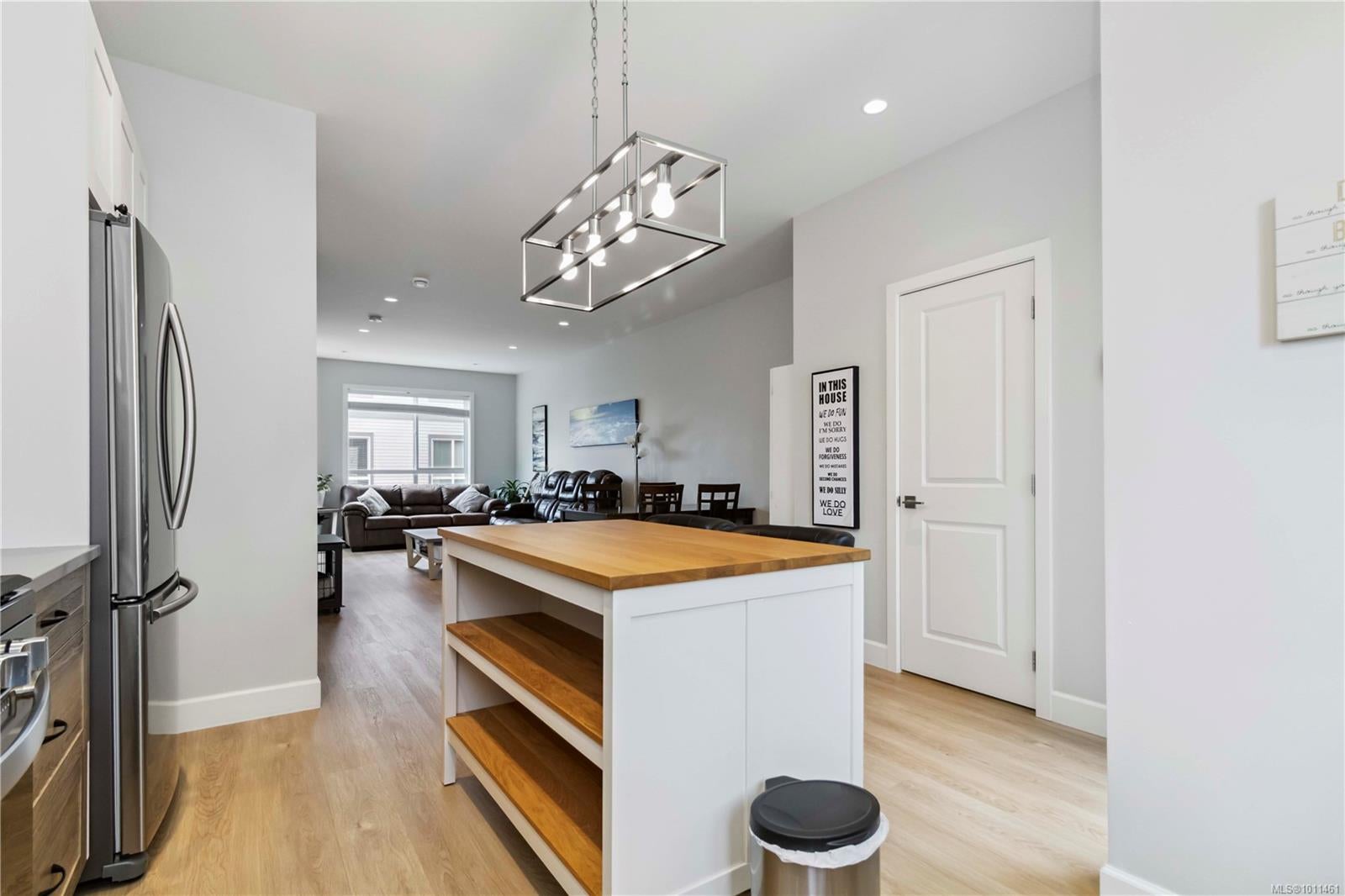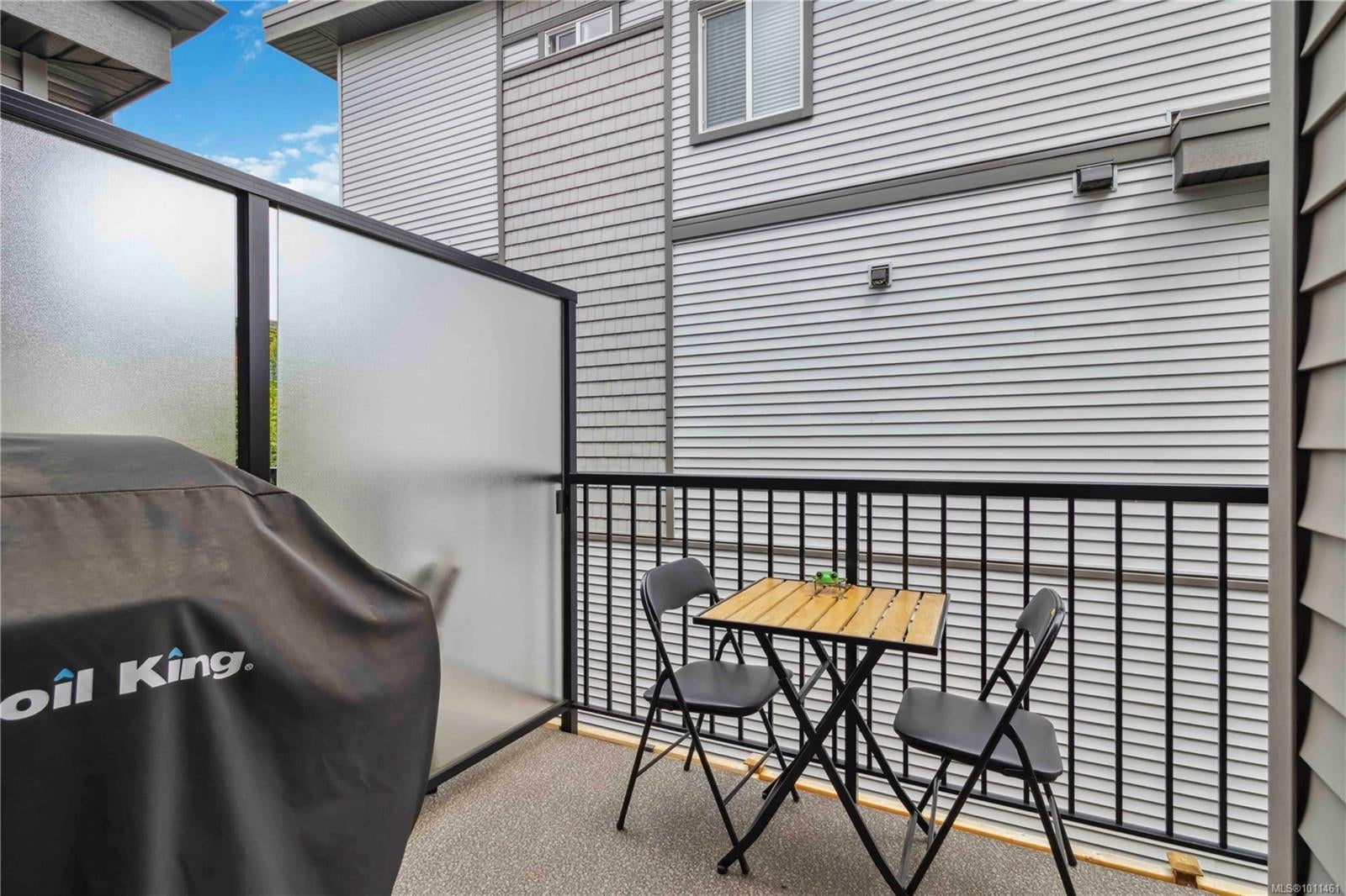 Corner unit, best location in the whole complex! Experience this beautifully designed townhome in the desirable Luxton Flats community. Offering 1,317 sq ft of thoughtfully laid-out space, this 3-bedroom, 3-bath home features an open-concept main floor with soaring 9-foot ceilings that enhance the sense of space and light. The contemporary kitchen is equipped with quartz countertops, a stylish tiled backsplash, gas range, and stainless steel appliances—perfect for both cooking enthusiasts and entertainers. Unwind by the sleek linear electric fireplace or step onto the private deck, complete with a natural gas BBQ hookup for easy outdoor dining. Upstairs, the spacious primary bedroom includes a modern ensuite with a walk-in shower. Additional highlights include a tandem garage, fully fenced yard with a hot tub, energy-efficient 2 heads ductless heat pump with A/C, and gas hot water system.